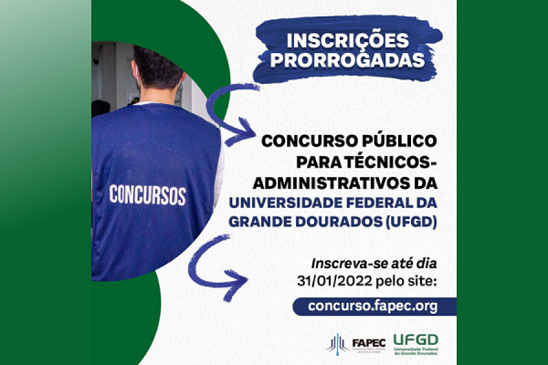 Terminará às 23h59 de segunda-feira, 31 de janeiro, o prazo para inscrições no concurso de cargos técnico-administrativos da Universidade Federal da Grande Dourados (UFGD). Portanto, quem estiver interessado em tornar-se servidor federal pode aproveitar os últimos dias de inscrição para participar dessa seleção que oferece 18 vagas, com salários iniciais que variam entre R$ 2.446,96 e R$ 4.180,66.