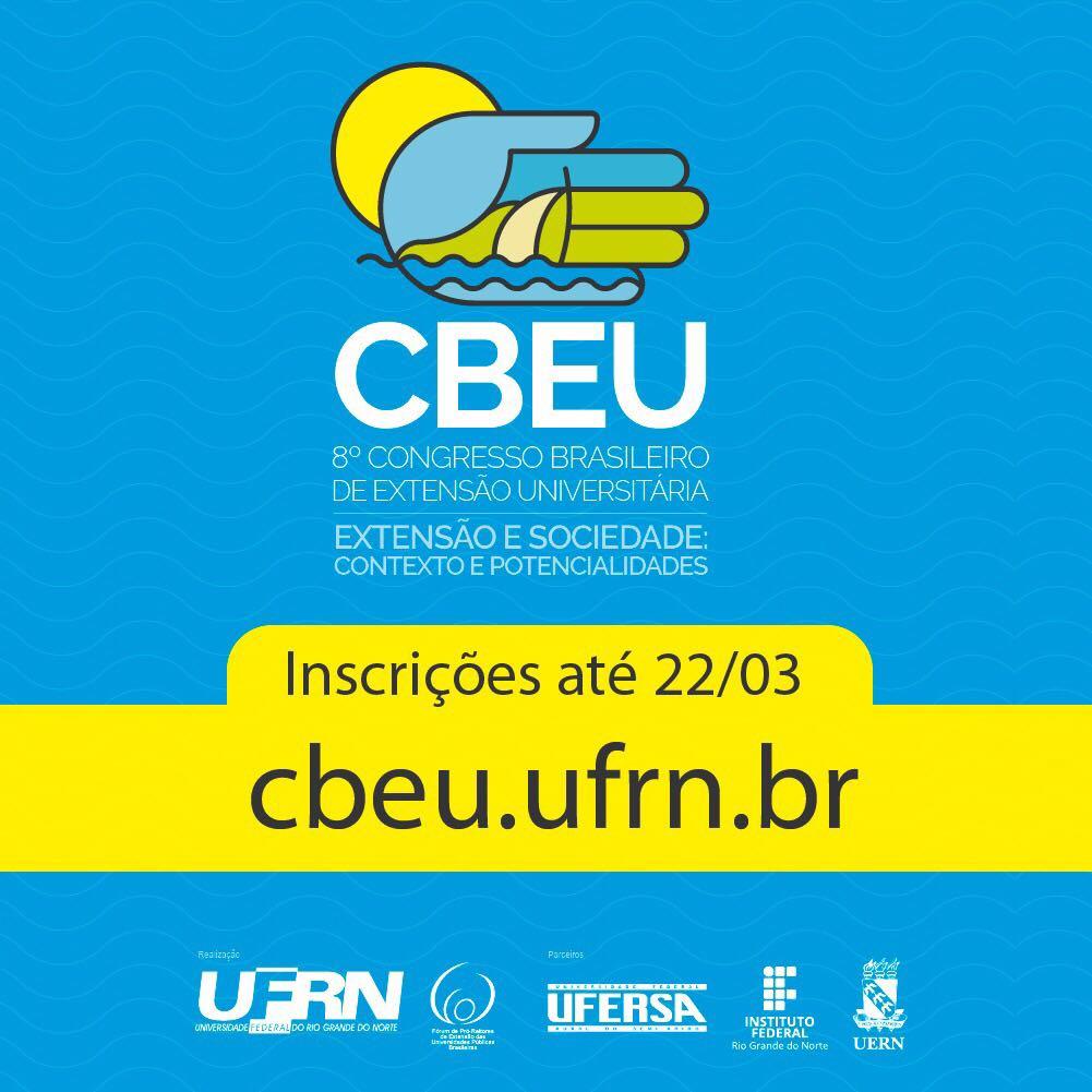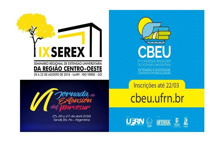 No Brasil, já no final do primeiro semestre de 2018, acontecerá o 8º Congresso Brasileiro de Extensão Universitária - CBEU, o maior evento brasileiro de Extensão Universitária. O evento tem como objetivo a discussão dos desafios da Extensão Universitária no Brasil, propiciando a discussão sobre os Contextos e Potencialidades da Extensão integrando os conhecimentos da universidade e da sociedade com proposições inovadoras para a sociedade. O 8º CBEU acontece bianualmente e a edição deste ano ocorrerá em Natal, na Universidade Federal do Rio Grande do Norte, no período de 28 a 30 de junho, com uma programação que vai envolver conferências, mesas-redondas, oficinas, comunicações orais e sessões de pôsteres. A submissão de trabalhos está aberta até o dia 22 de março de 2018.