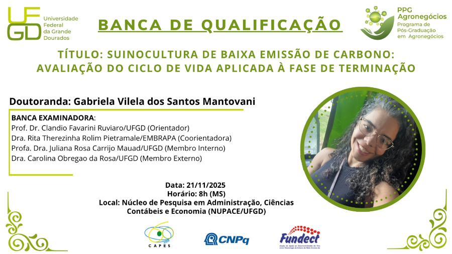 O Doutorado em Agronegócios da UFGD convida você para uma defesa de projeto PRESENCIAL que está nesse debate. Participe da apresentação da doutoranda Gabriela Vilela dos Santos Mantovani.